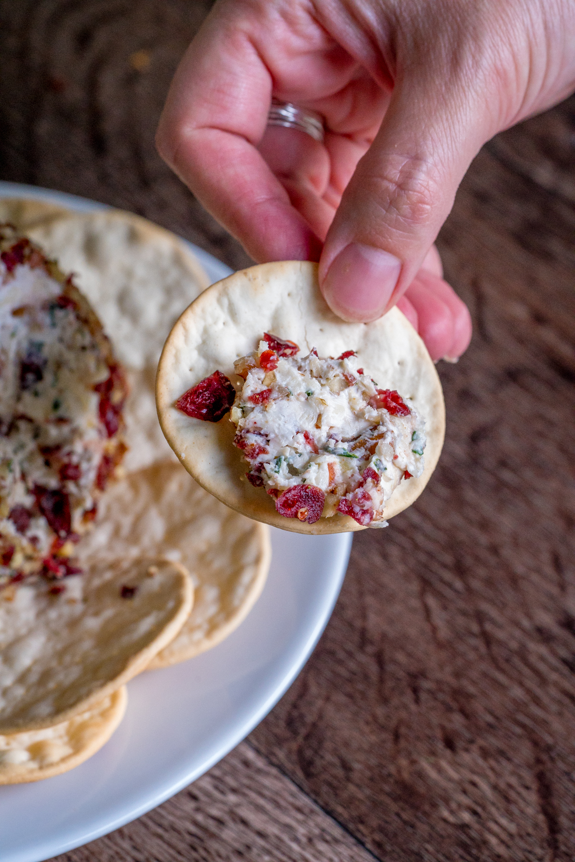This cheese ball has a nice crunch and sweet-tart thing going on, which is a wonderful contrast to the gouda and cream cheese within it. It’s made up of: