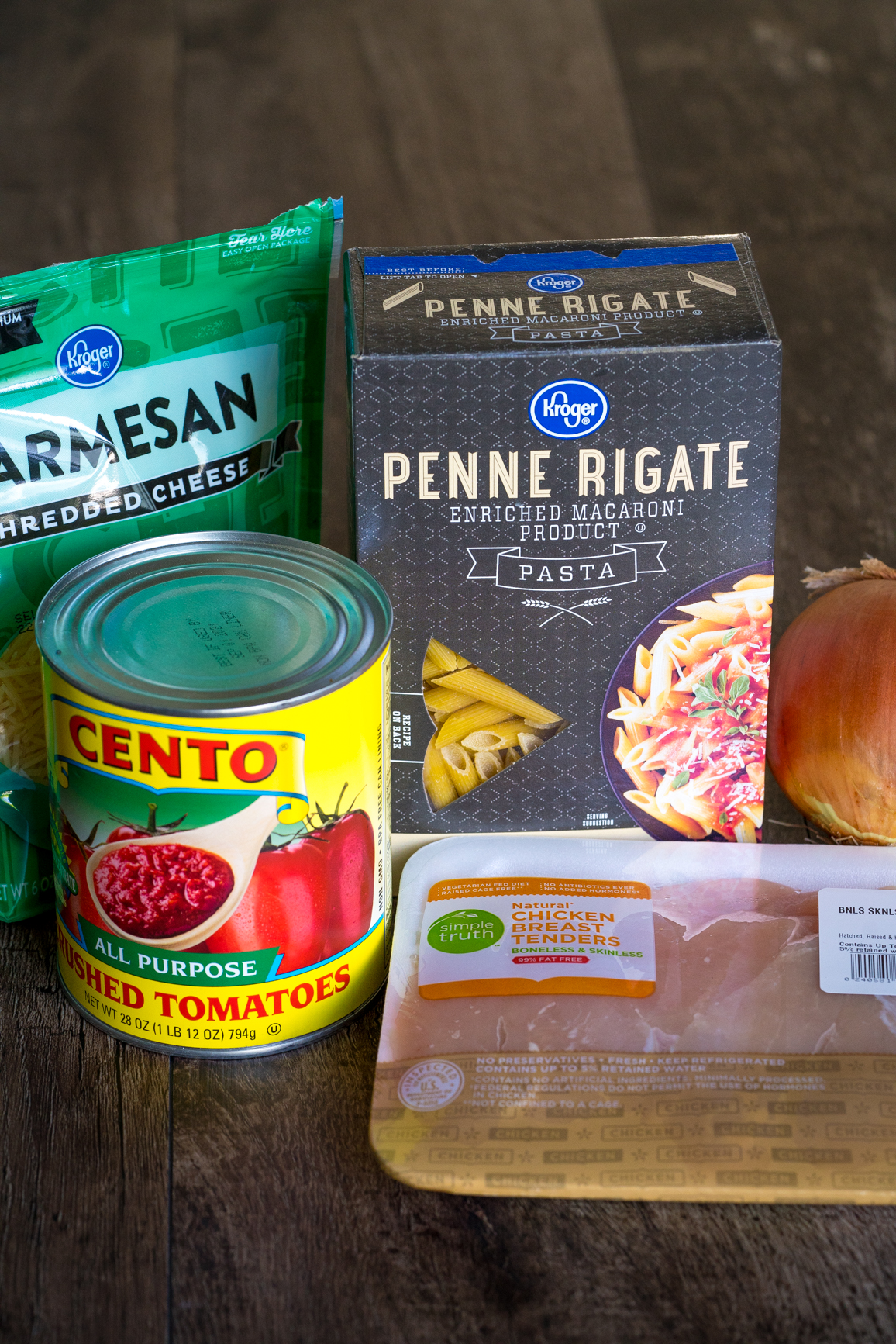 To give the chicken parm that homecooked taste, we don’t just rely on a jar of marinara. Instead, we make our own red sauce for the slow cooker. Not only does this allow us to control the ingredients, but the sauce gets the benefit of a longer cooking time, which means we get to enjoy the benefits of all that wonderful flavor you’d expect from a scratch-made pasta sauce. So, some diced onion, spices, and a couple cans of crushed tomatoes are all we need to make a truly delicious sauce for our chicken parmesan pasta.