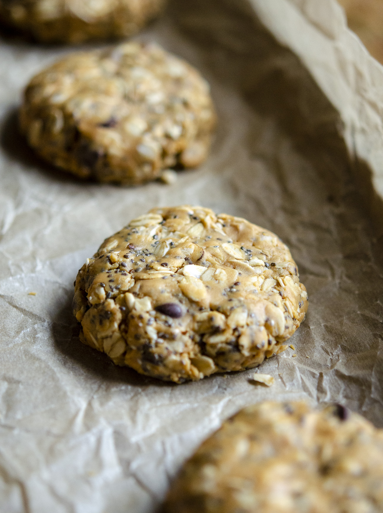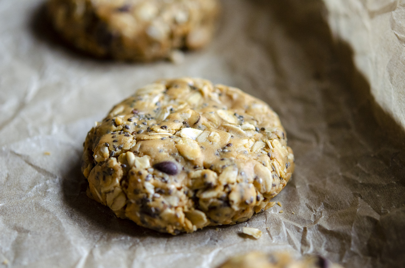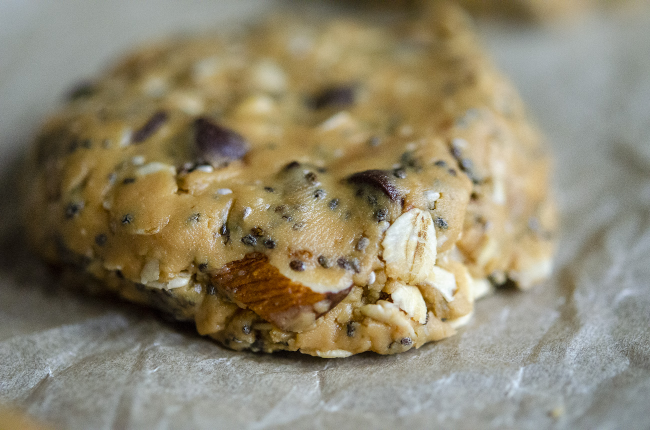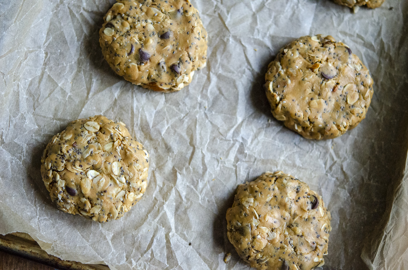 They’re made up of peanut butter, rolled oats, honey, vanilla, chia seeds, chopped nuts, and some dark chocolate chips. If you’re on a quest for a healthy breakfast cookie, you’ll want to seek out peanut butter and dark chocolate chips with little to no added sugar, but there are plenty of great options on the grocery store shelves these days.