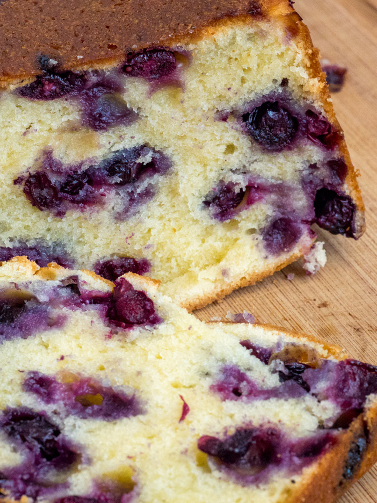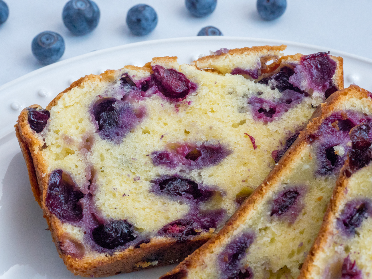 Butter and cream cheese keep the crumb of this bread both moist and flavorful, while the blueberries add juicy bursts in every bite. The batter comes together in one bowl – first you cream together the butter, cream cheese, and sugar, and then you add the eggs and finally the dry ingredients.