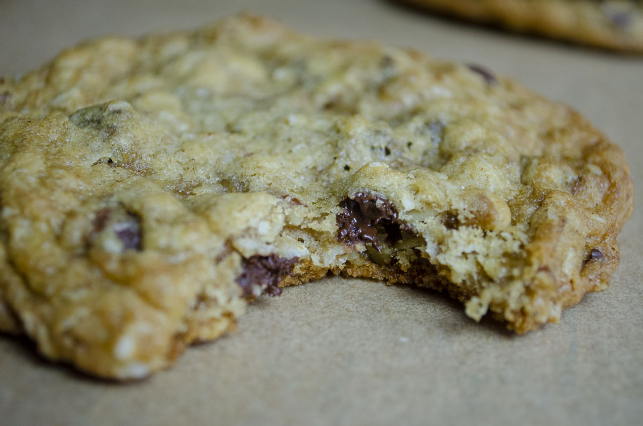 And it’s easy to see why. These cookies are GOOD. They’re a chocolate chip cookie… but a chocolate chip cookie that’s been loaded with a few other ingredients that bring in a ton of extra texture and flavor. They’re big (as most things in Texas tend to be) and I can promise that every time you hand them out, you’ll end up with multiple requests for the recipe.