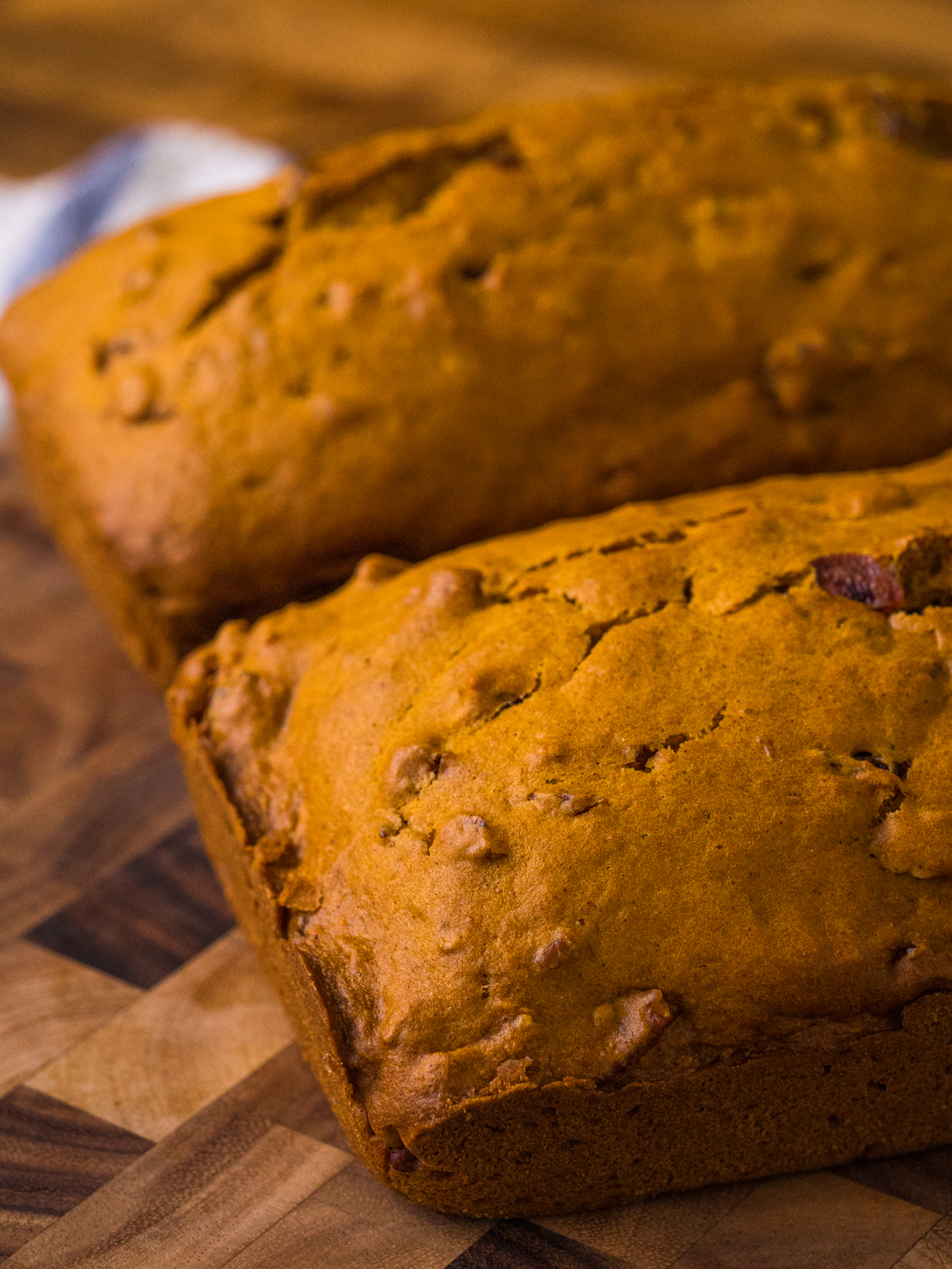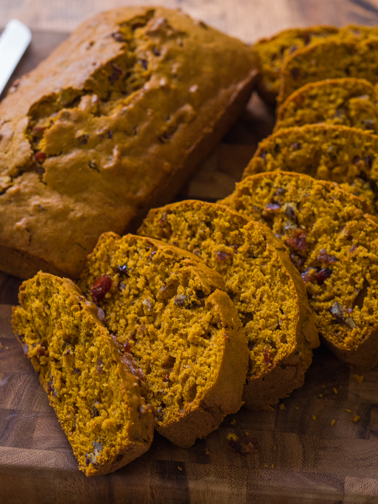 This bread is so nicely spiced that it’s delicious all on its own, but some butter slathered on a slice wouldn’t hurt things either. And it would be great with some pumpkin or apple butter as well!