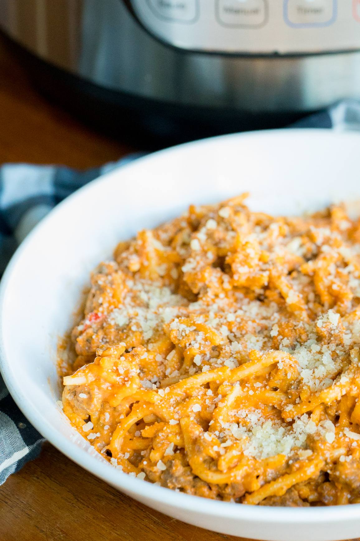 Around my house, spaghetti is a go-to quick and easy dinner on busy weeknights, but the Instant Pot makes it even easier with its set-it-and-forget-it preparation. Thanks to the addition of cream cheese, this particular version is a creamier kind of comfort that feels a little more special. It’s an easy meal that the whole family is always happy to tuck into.