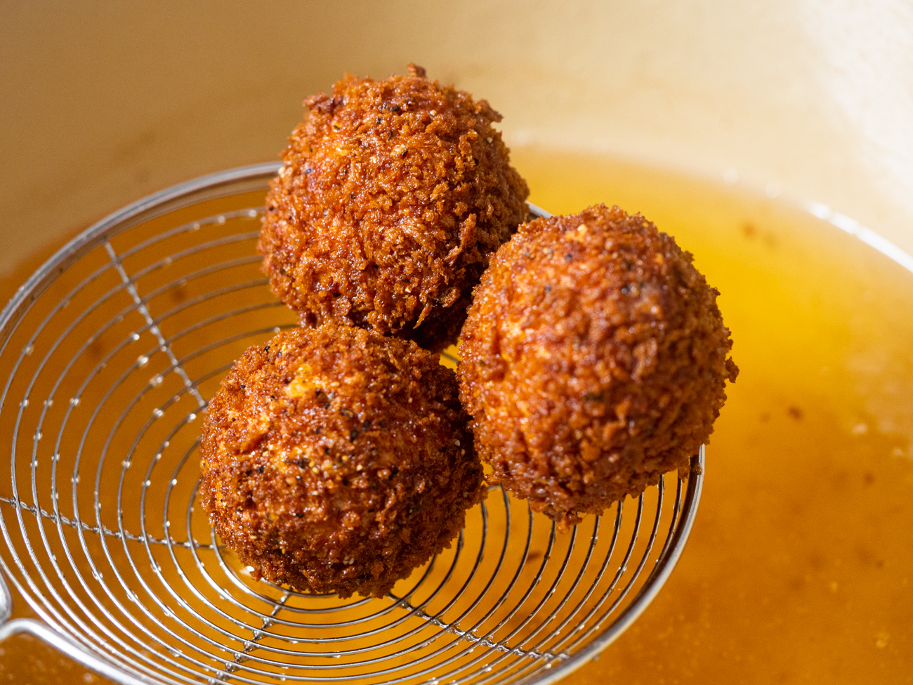 From there they head into some piping hot oil where they get golden brown and irresistibly crispy.