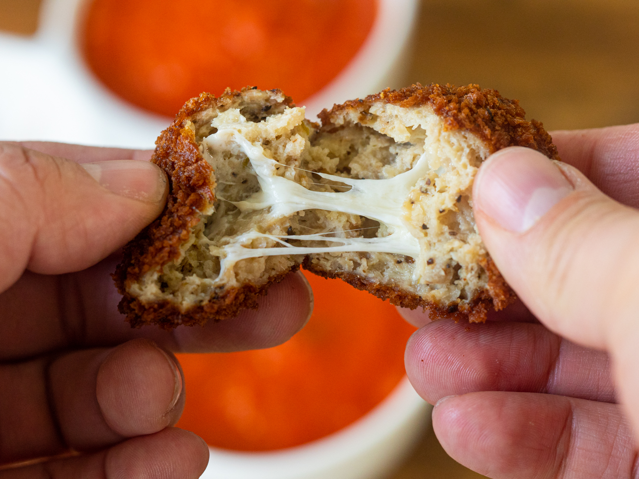 If you took all the best parts of Chicken Parmesan – the crispy breading, the ooey-gooey cheese, the savory chicken – and tucked them all into a meatball, you’d get these. Our Crispy Chicken Meatballs aren’t what you traditionally might find atop a bowl of spaghetti, but they are definitely all kinds of wonderful. They’re crispy, they’re cheesy, and whether they’re served as a starter or a main, they’re so delicious.