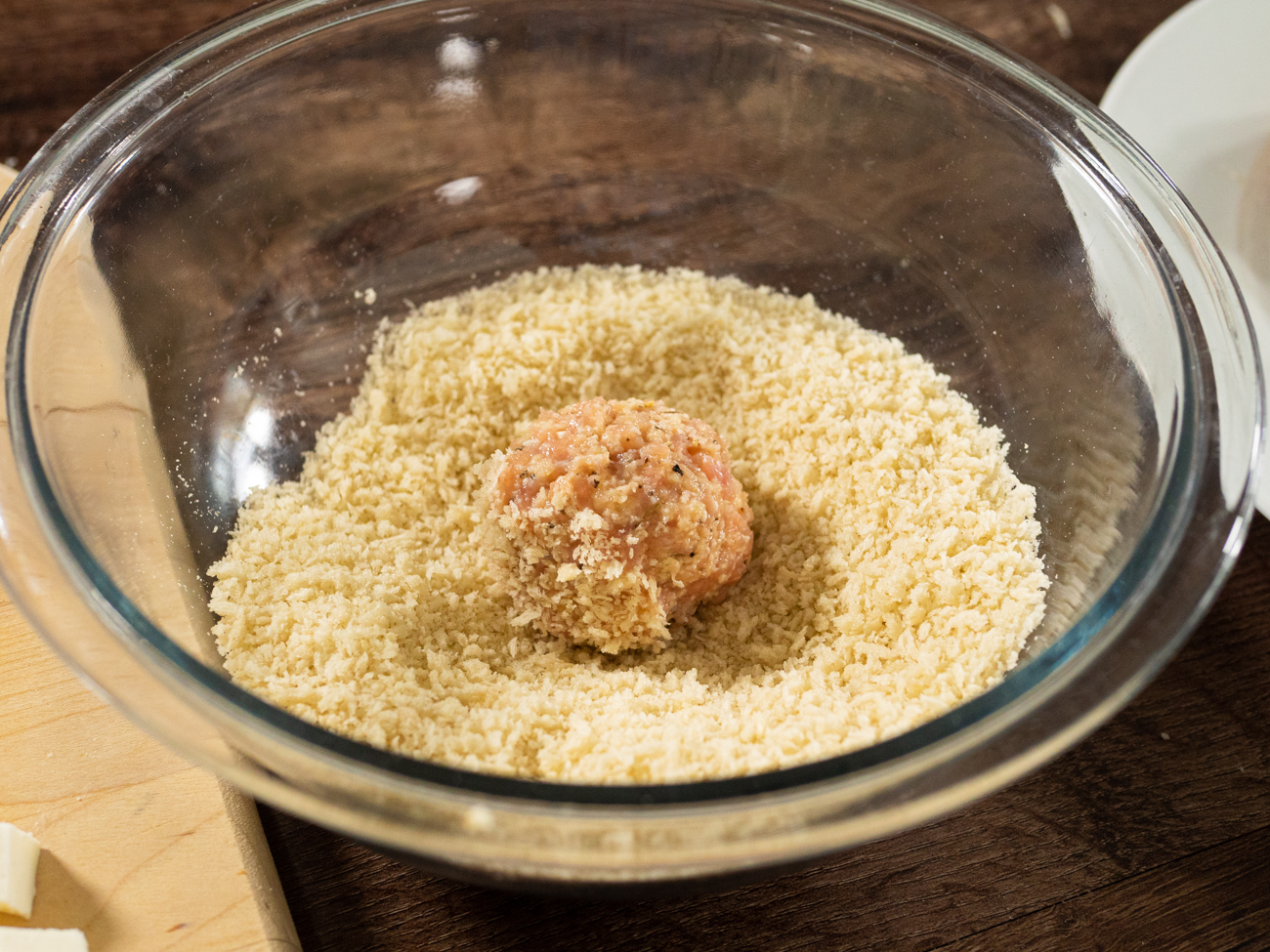And then each meatball is pressed into Panko breadcrumbs until the entire surface is coated.