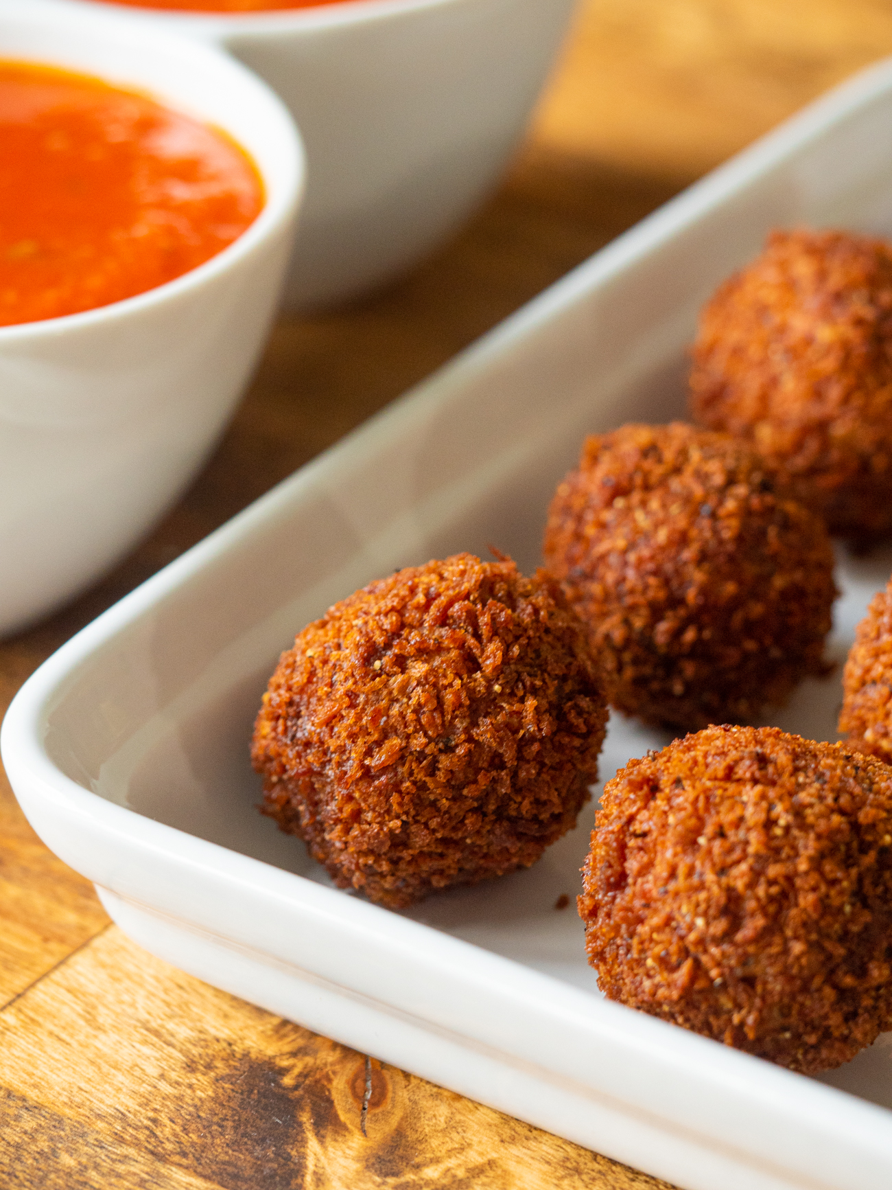 A little dish of marinara for dipping is the perfect partner to these little beauties, but you could always tuck them into some sauce and serve them over pasta too. Either way, they’re sure to become a favorite!