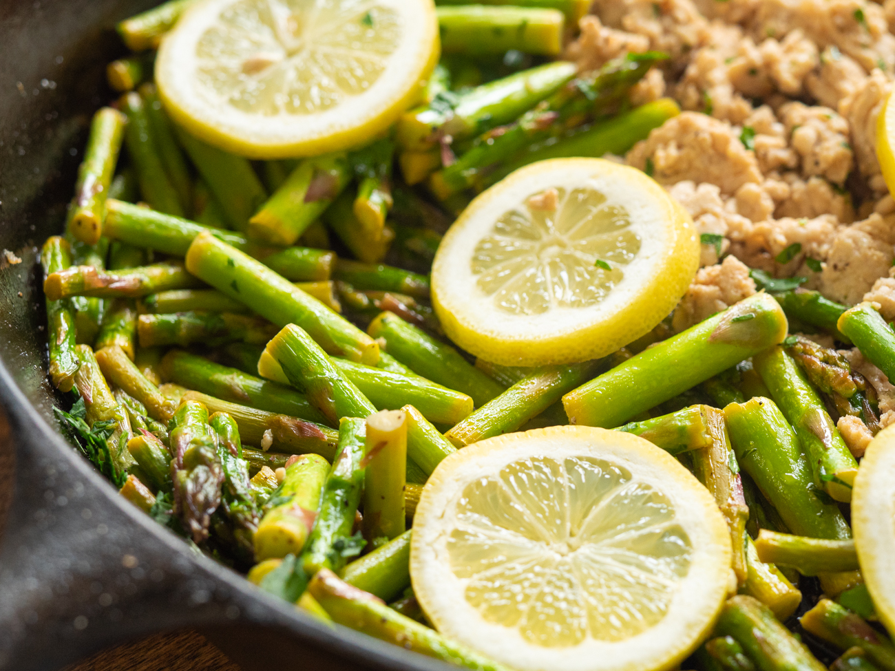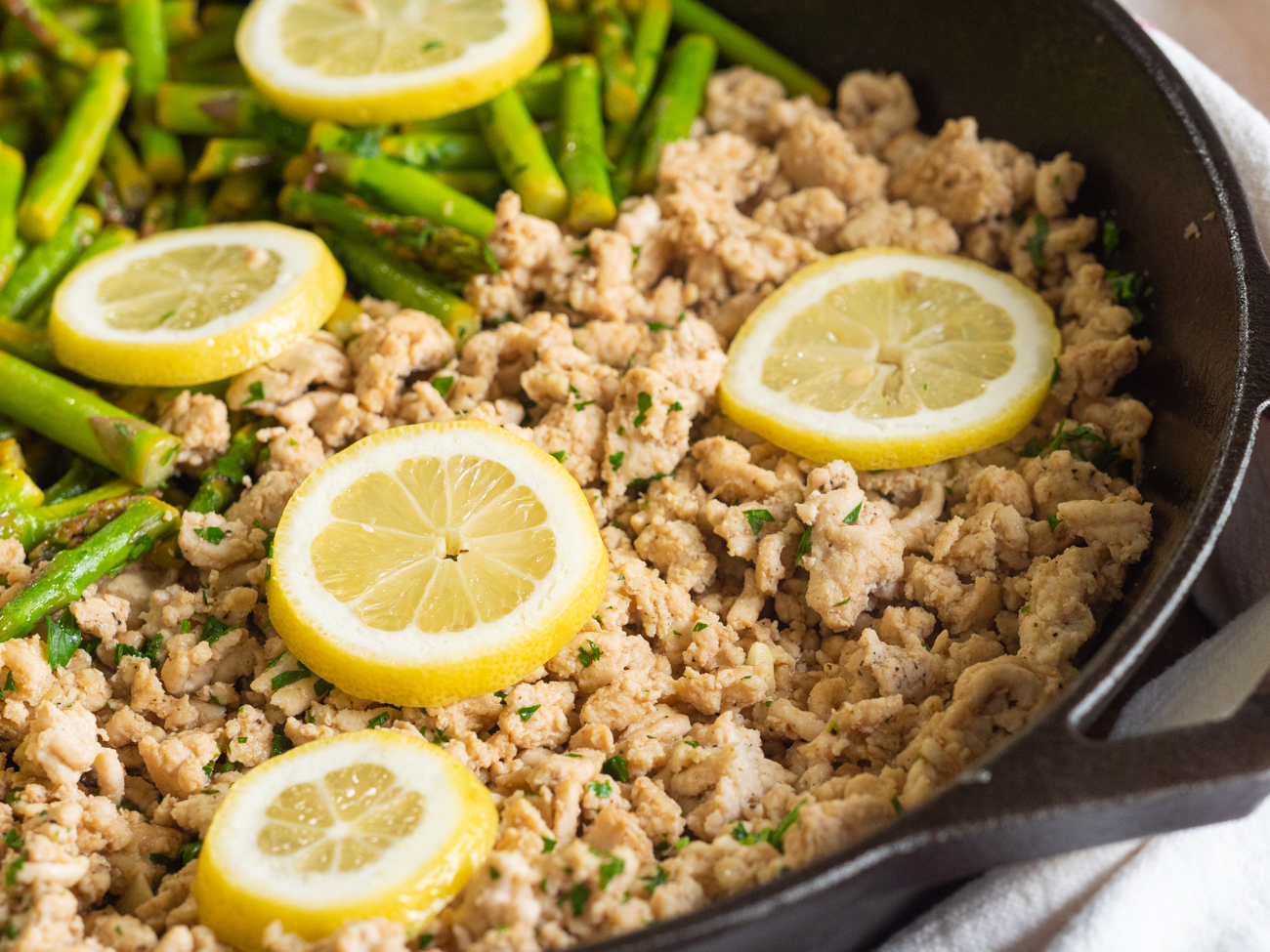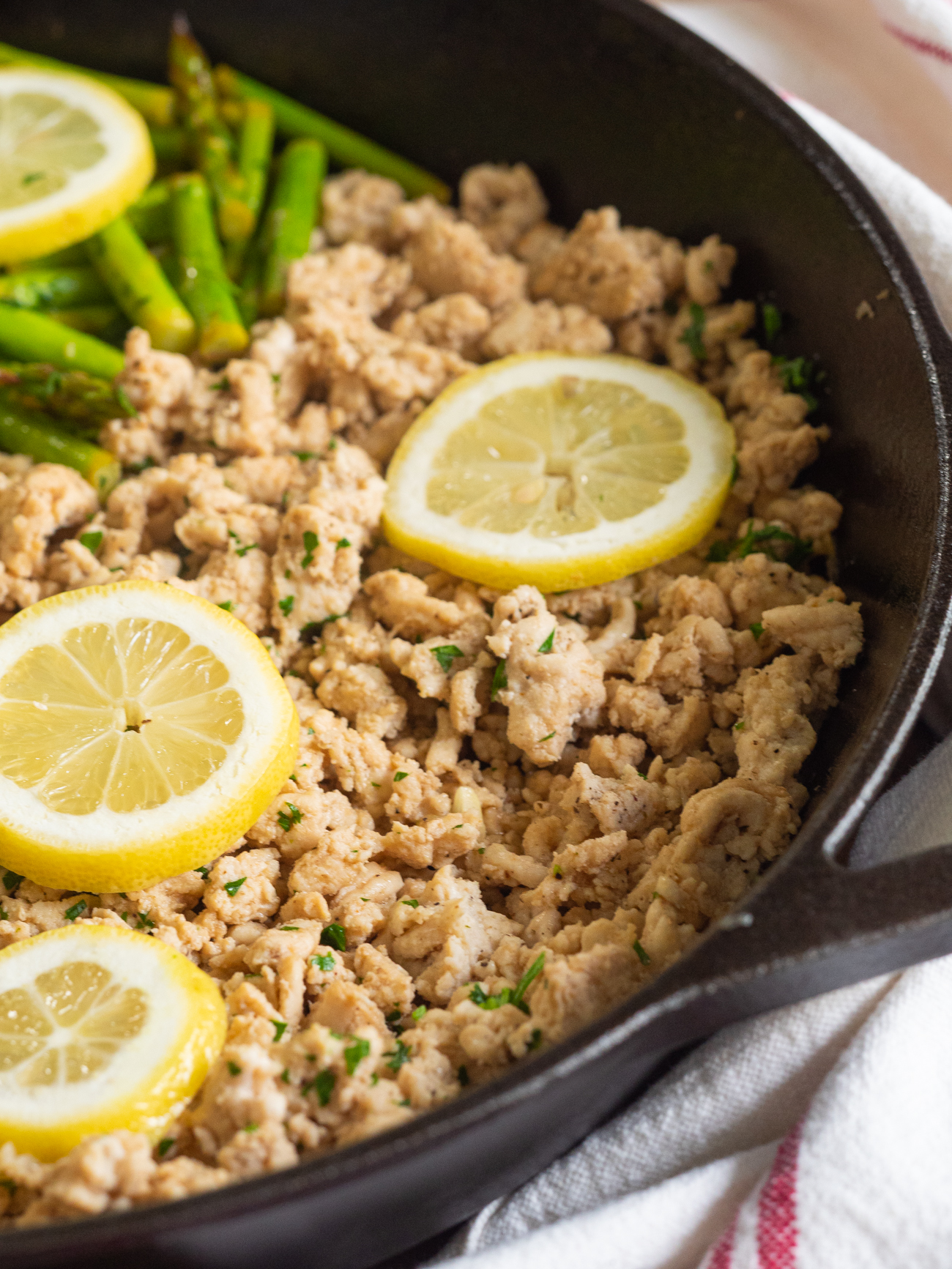 Ground turkey sometimes gets a bad rap as being a little boring, but the truth is that you can use it in countless ways to make a delicious and easy meal with a healthier flair. In this quick skillet, it’s dressed up with some seriously scrumptious garlic butter flavor and paired with bright and tender asparagus for a complete meal that only takes fifteen minutes from start to finish!