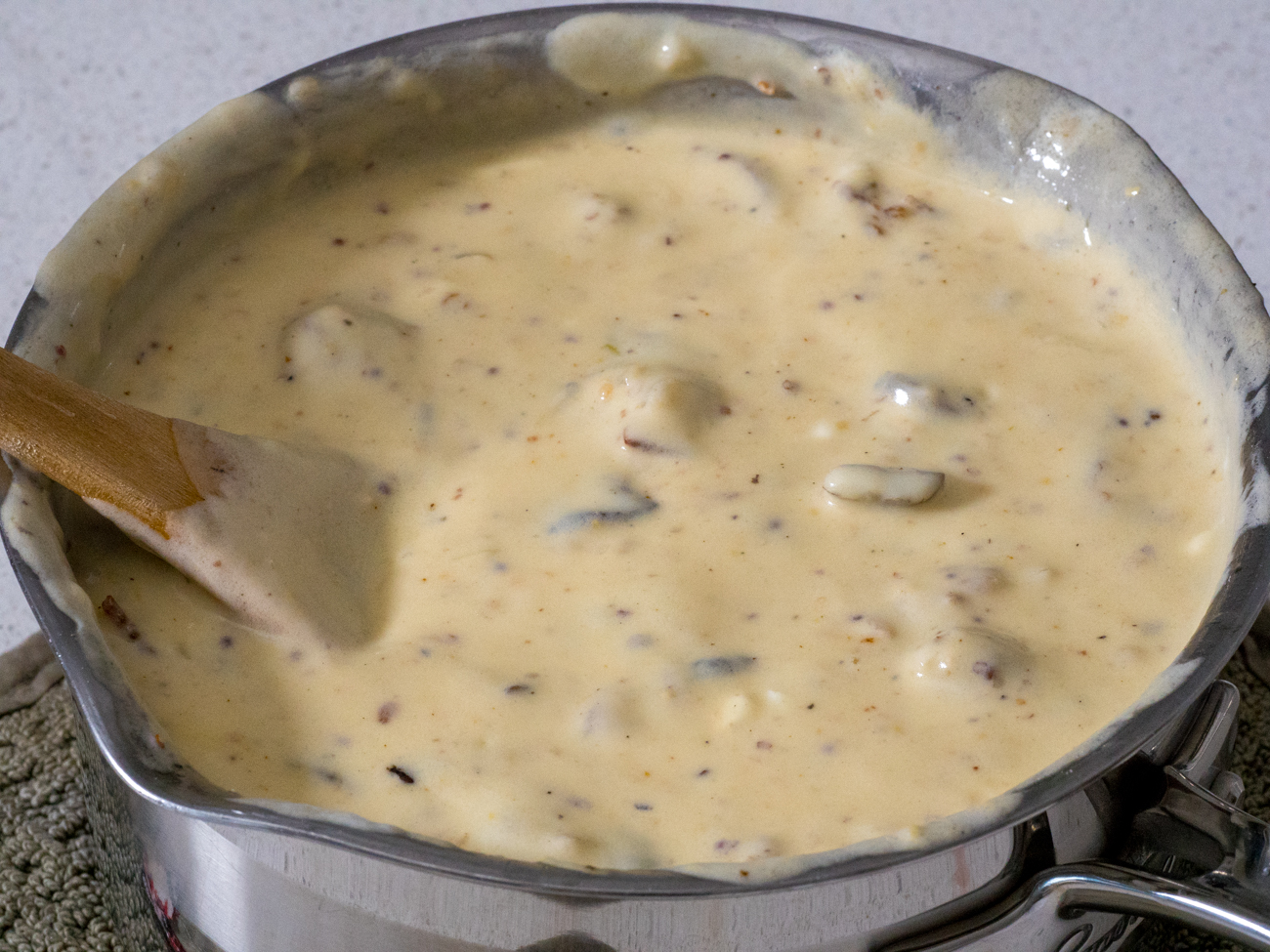 Some sour cream gets stirred in too, and while that’s a lot of creaminess, a dash of apple cider vinegar works with the stone ground mustard to bring in some acidity for balance. Once everything is stirred together, the flavor of the beer helps to temper the heartiness of the dish.