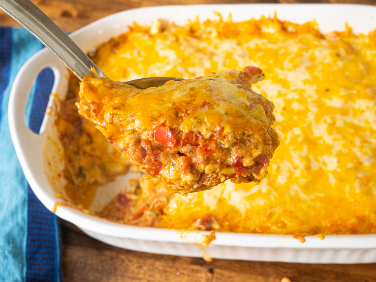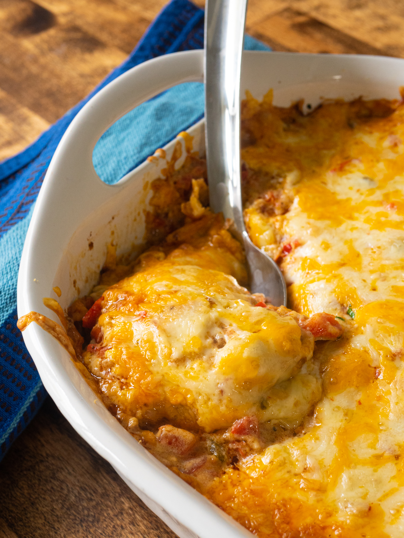 And then, of course, there’s cheese. (What’s a casserole without cheese, after all?) We use a combination of pepper jack and cheddar, which is just the right balance for a tex-mex bake like this.