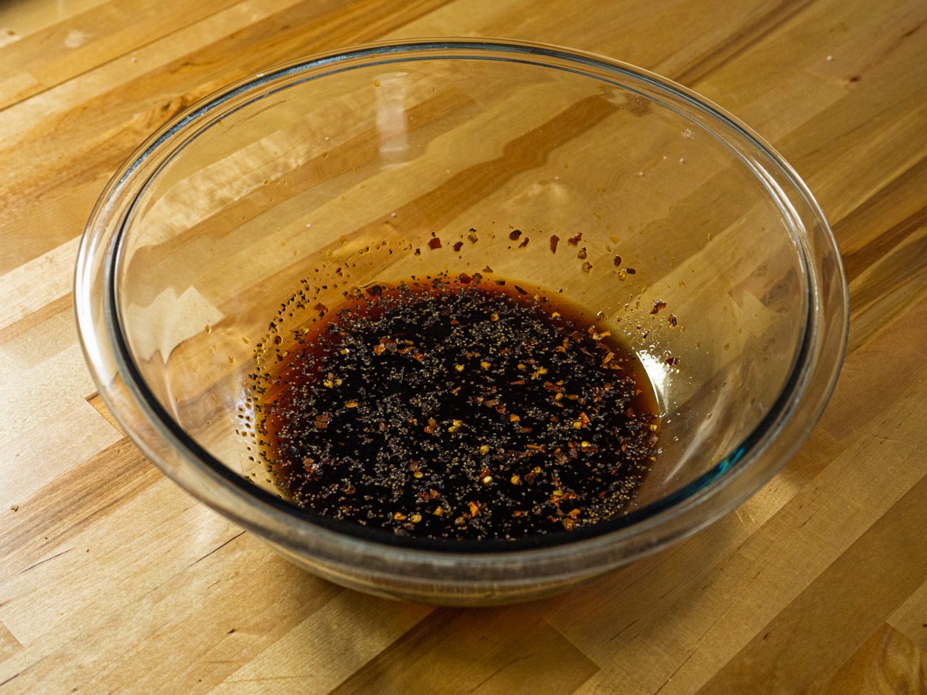 … and whisk up a quick mixture of soy sauce, hoisin, rice wine vinegar, and chili flake.