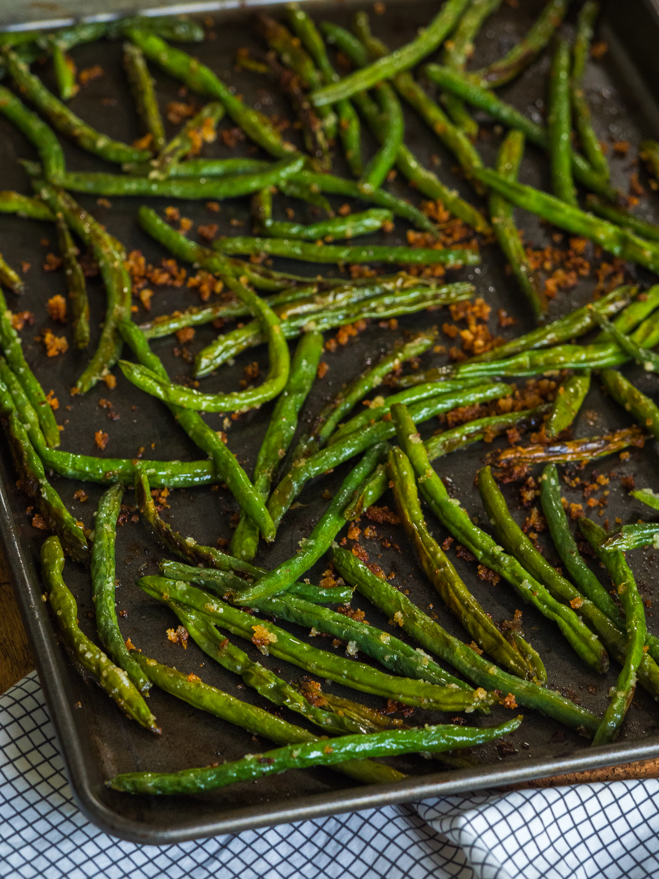 For years, I’ve cooked my green beans the same way over and over again – steamed and served with a little butter and a squeeze of lemon. But no longer. While that method might be classic and easy (and plenty delicious), there’s more than one way to cook a green bean. Like this way, where green beans are roasted until tender in a salty and crispy Parmesan-breadcrumb mixture. Trust me, it’s more than worthy of being folded into your green bean rotation.