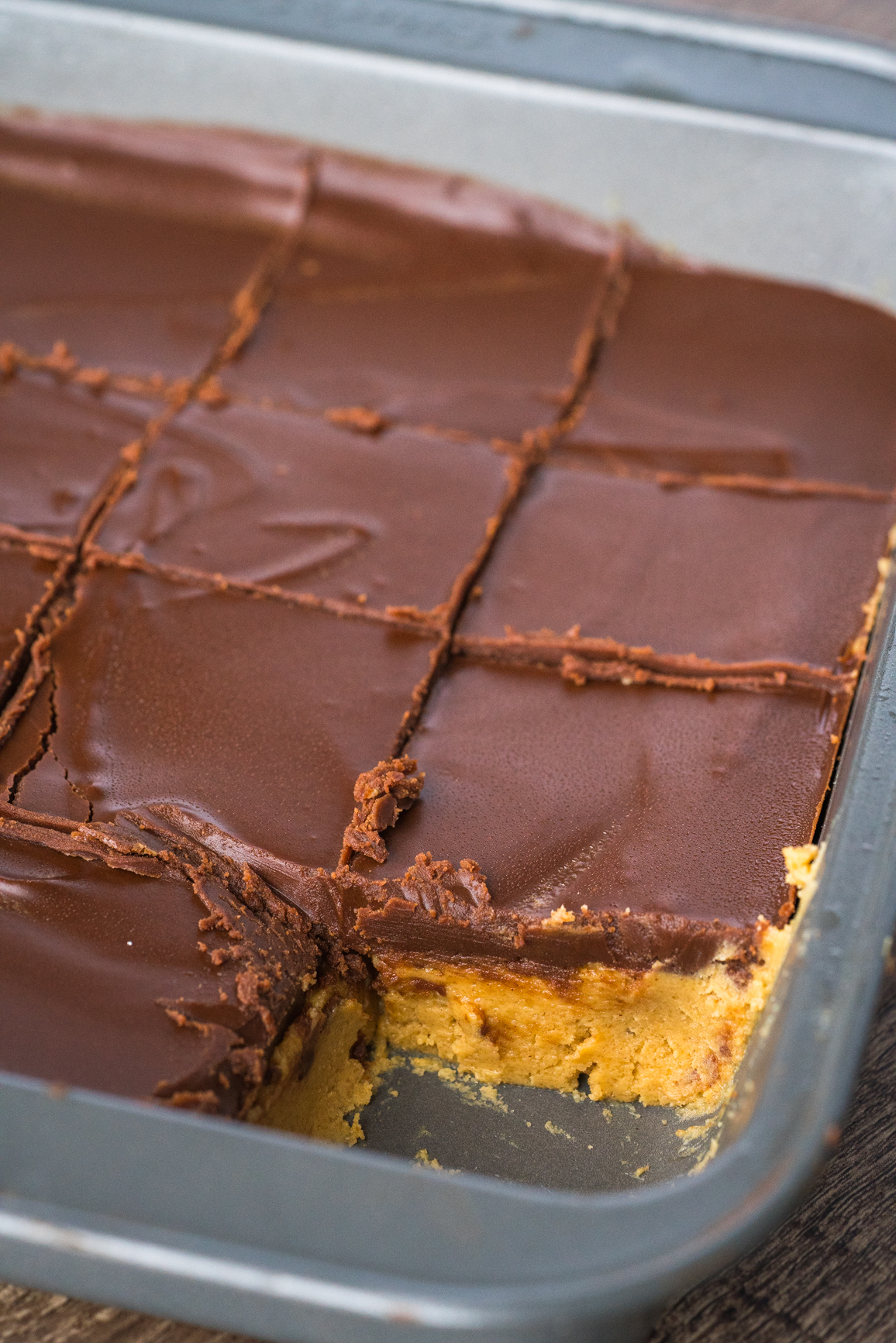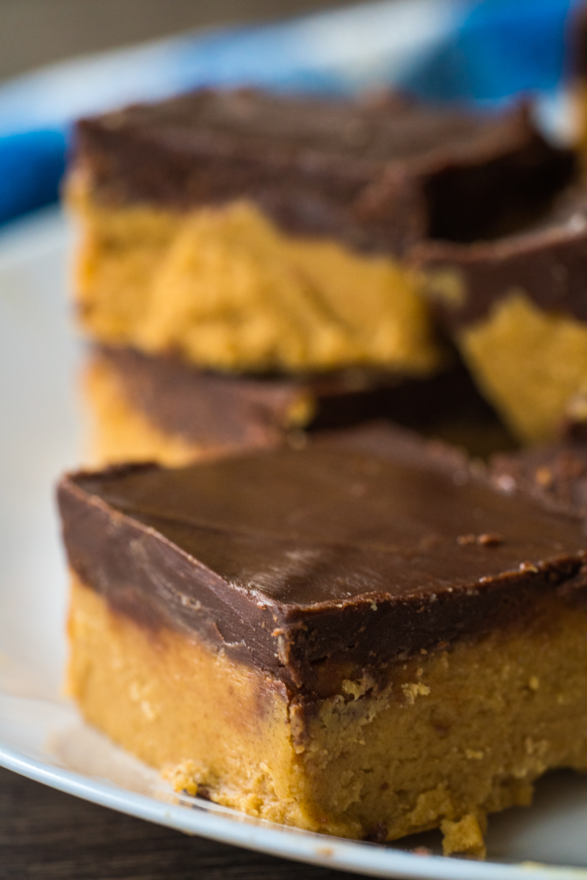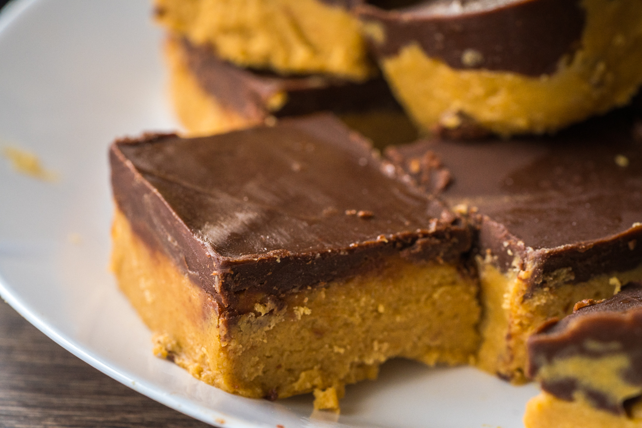 I love that these bars are easy to make, and I love that there’s no oven required for such a confection, but what I especially love about them is that the chocolate layer is substantial enough to have a bit of bite against the creamy peanut butter below. It’s still soft, but it’s just very present in its chocolatey-ness. If chocolatey-ness is a word.
