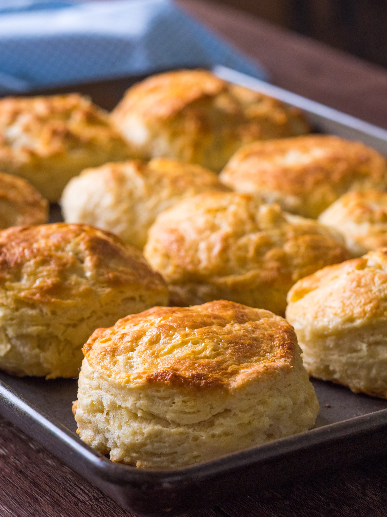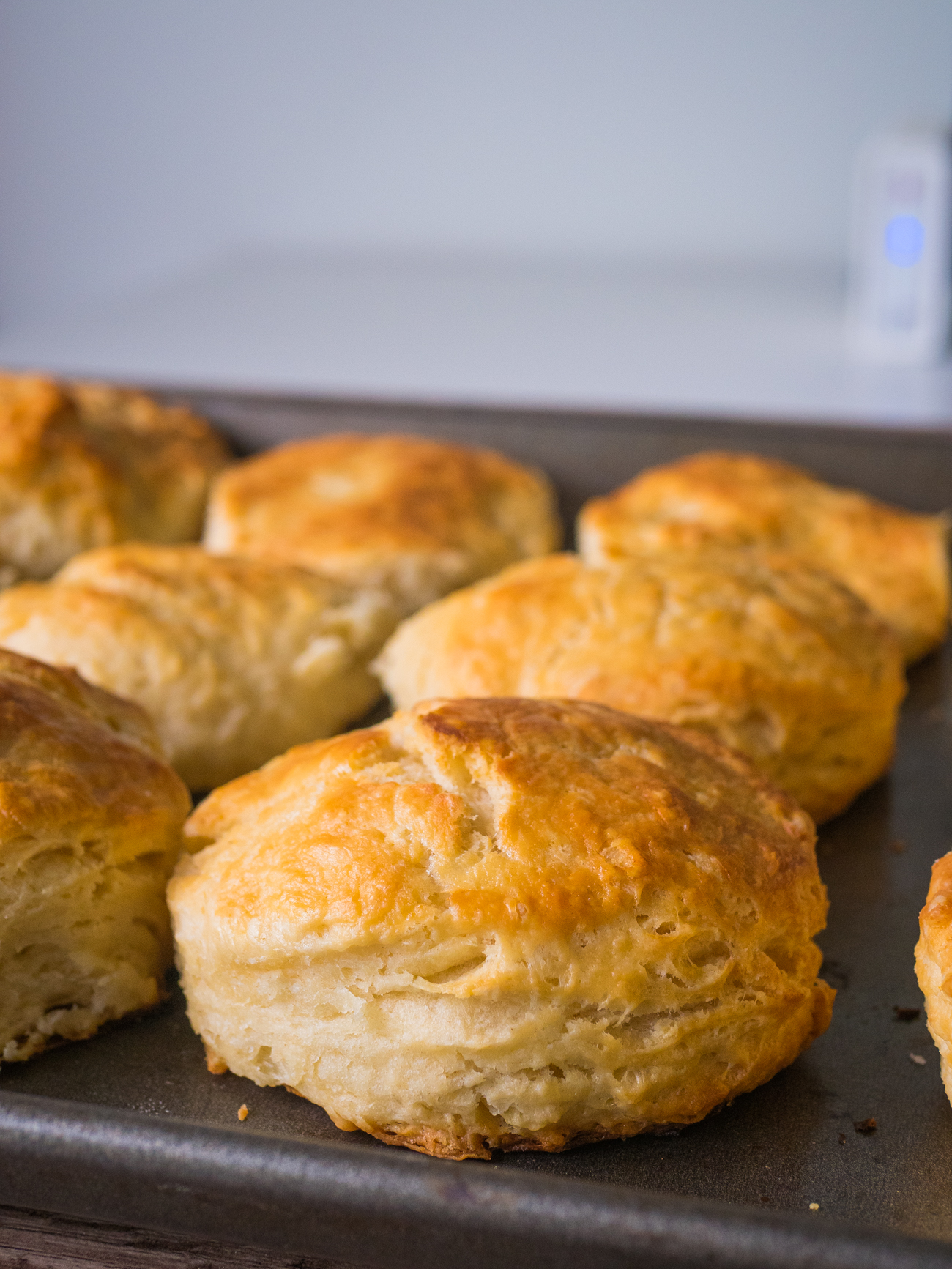All in all, it’s a simple process. Just pay attention to temperature, don’t overwork your dough, don’t twist the biscuit cutter and you’ll end up with a beautiful, flaky biscuit!