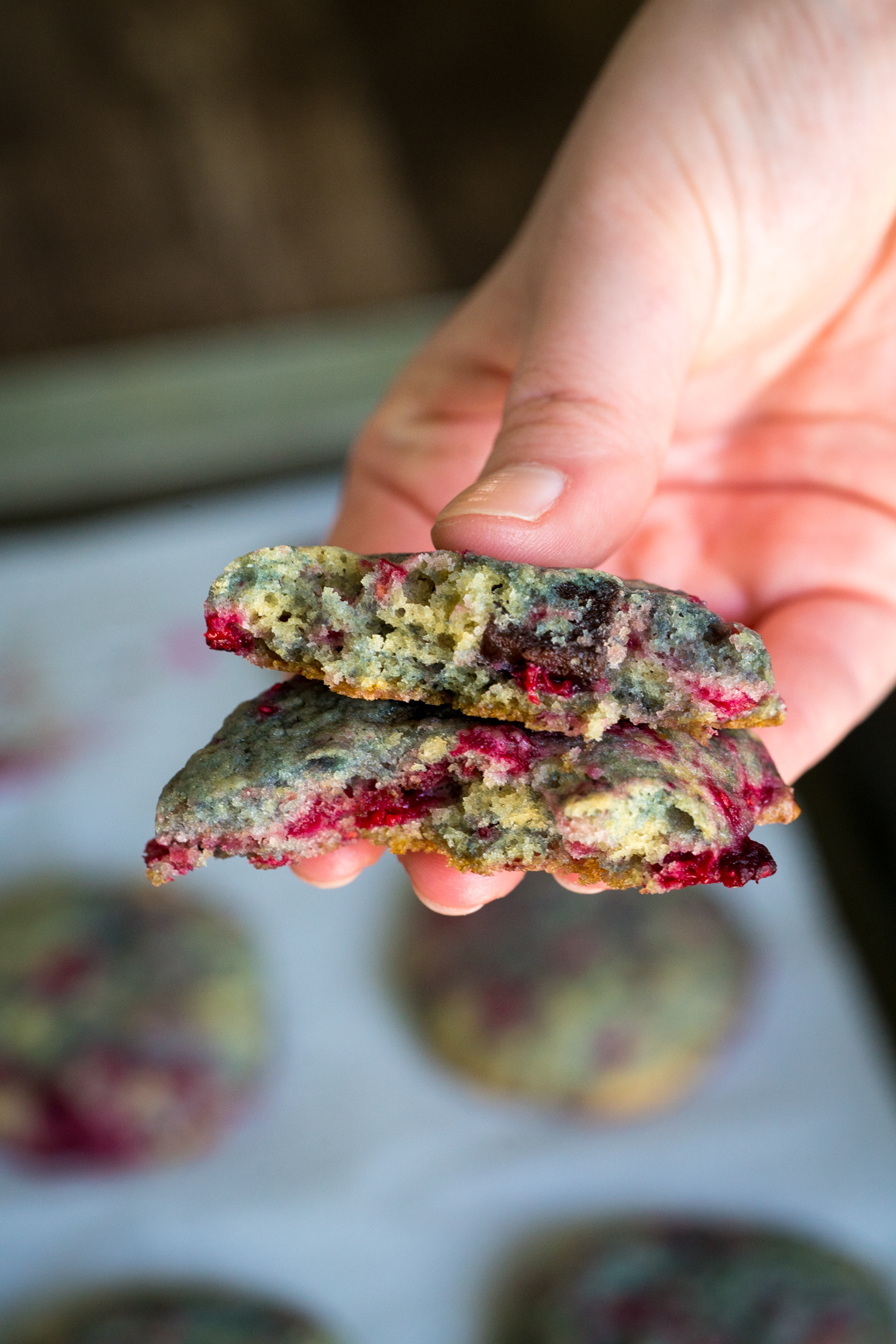 We were so thrilled with how these cookies turned out. The chocolate chunks add richness while the berries add a fresh twist, and we’ve made them several times now, plus given the recipe to friends who’ve absolutely demanded it once they tried these! If you want a cookie that looks as great as it tastes, look no further, these are for you!