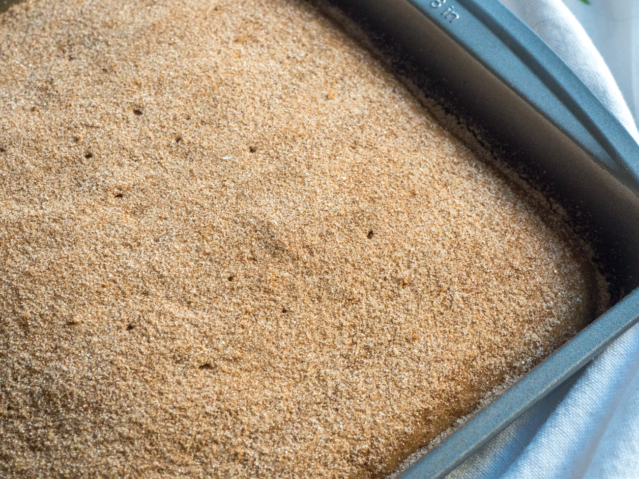 Give everything a stir, pop it in the oven, and while the cake is still warm sprinkle a generous amount of cinnamon-sugar over the top.