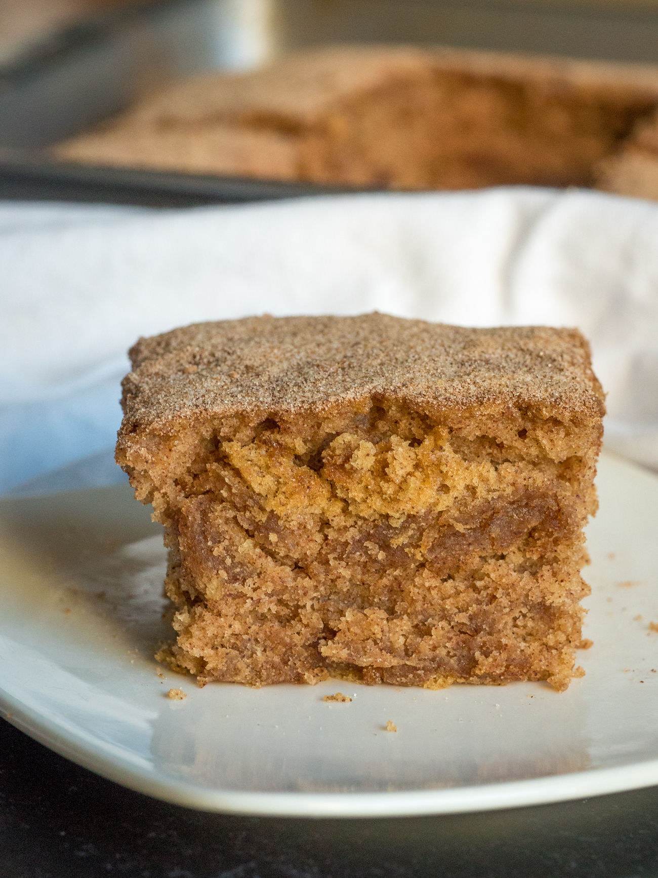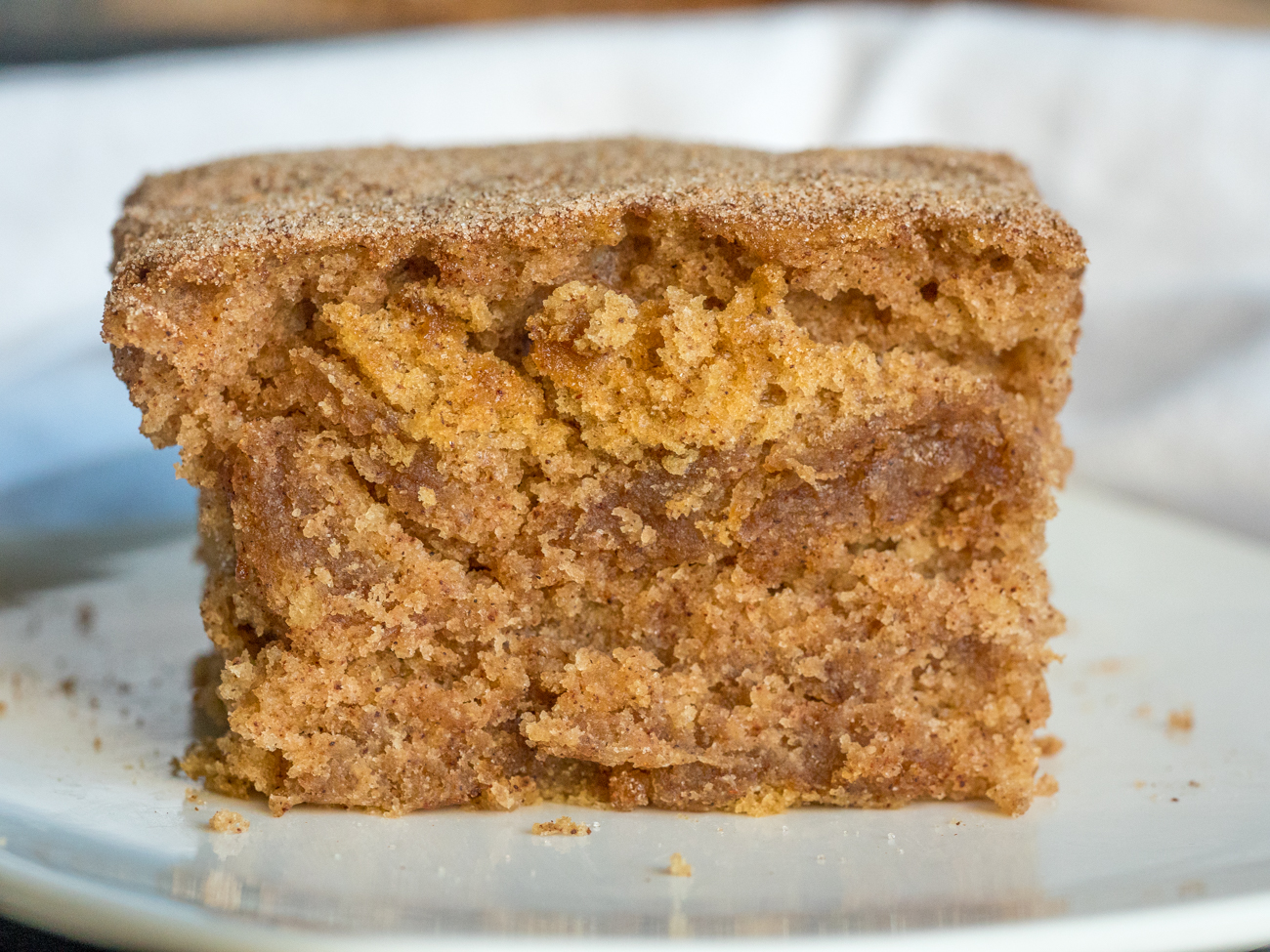 Crazy Cake was born in the era of the Great Depression, a time when people had to turn a little into a lot. Crazy Cake was one such feat of ingenuity, a recipe that used no milk, butter, or eggs at all but still produced a sweet, moist and delicious cake. You will usually see it as a chocolate cake, but here we’ve turned it into a sugary-cinnamon snickerdoodle version. Like the traditional one, it uses no perishable ingredients but you still end up with one amazing cake.