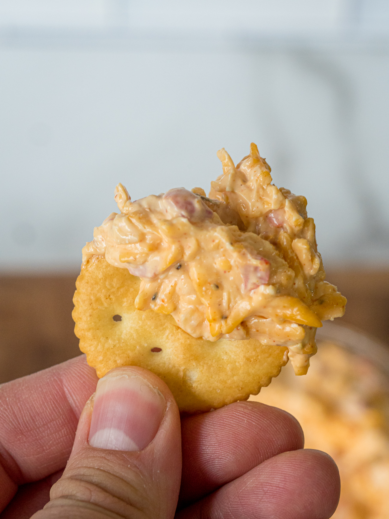 Like any good regional treat, you’ll find versions of this with different spices and seasonings. Ours is kicked up with a bit of Old Bay to keep things peppery and smoky and everything is folded together in a base of mayo and cream cheese so that no matter how you decide to use it, it’s creamy as can be.