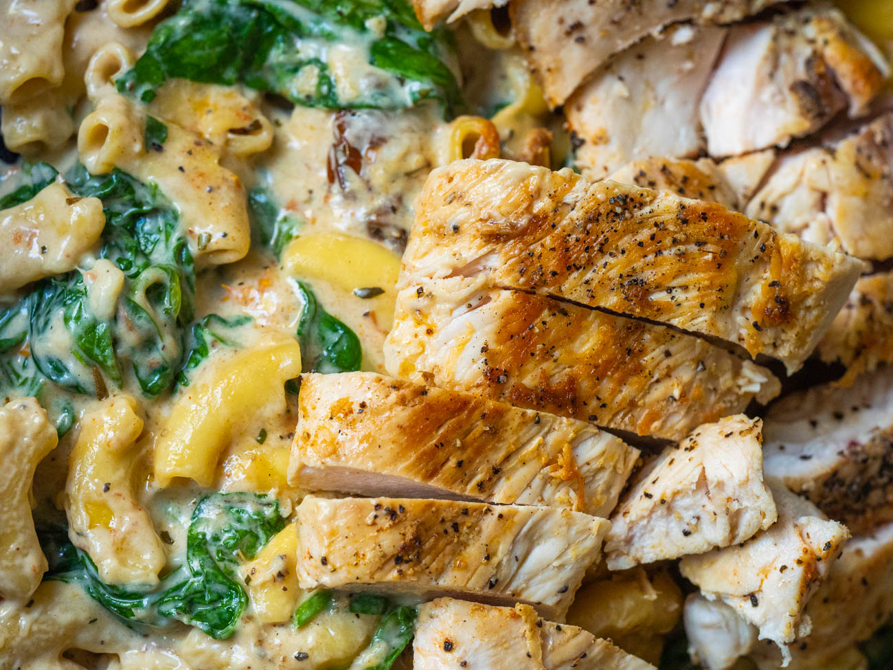 - Slice chicken into strips and serve atop or stirred into pasta. Enjoy!